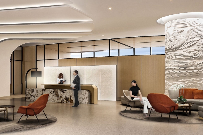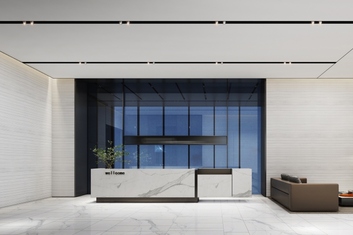 整個辦公空間的設計以高檔、奢華新中式為主要風格,新中式是為了突破古典中式的沉悶感而衍生的,它結合了現代的大理石,也更追求舒服耐用。在保留古色古香的柵格元素的同時,也更加強調燈光的運用,以及家具的柔軟度,給人一種恰到好處的溫和感。
