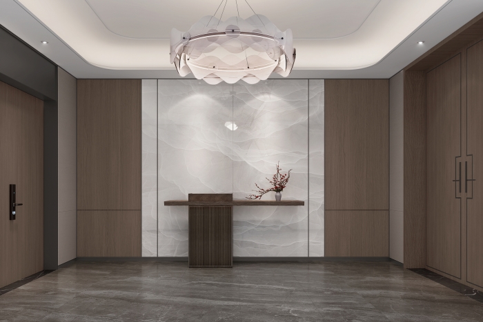 該案例為度假酒店內部辦公樓裝修。意圖打造一個寧靜素雅的辦公空間,沒有張揚的艷麗也沒有色彩的繁冗,有的只是處處透露的清新和淡雅,主要用到的材料有木飾面、藝術漆、裝飾鐵藝、大理石及裝飾竹席等,充分使用東方的元素打造出一個沉穩內斂的氛圍,裝飾竹席和鐵藝造型等裝飾品將傳統元素和現代元素相結合,以現代審美打造富有傳統意味的空間。