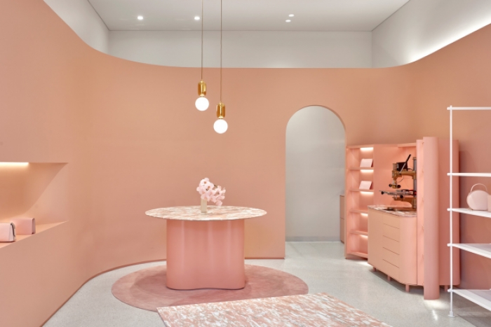 本店面裝修設計項目,旨在打造一個簡約風格的店鋪,通過簡潔的設計手法和創新的元素結合,營造一個現代、時尚且溫馨的購物環境。 設計理念注重功能性與審美性的完美結合,旨在提供舒適的購物體驗。 采用粉色為主色調,搭配白色色調,營造溫馨舒適的氛圍。材料采用環保、耐用的,注重材質的質感和視覺效果。